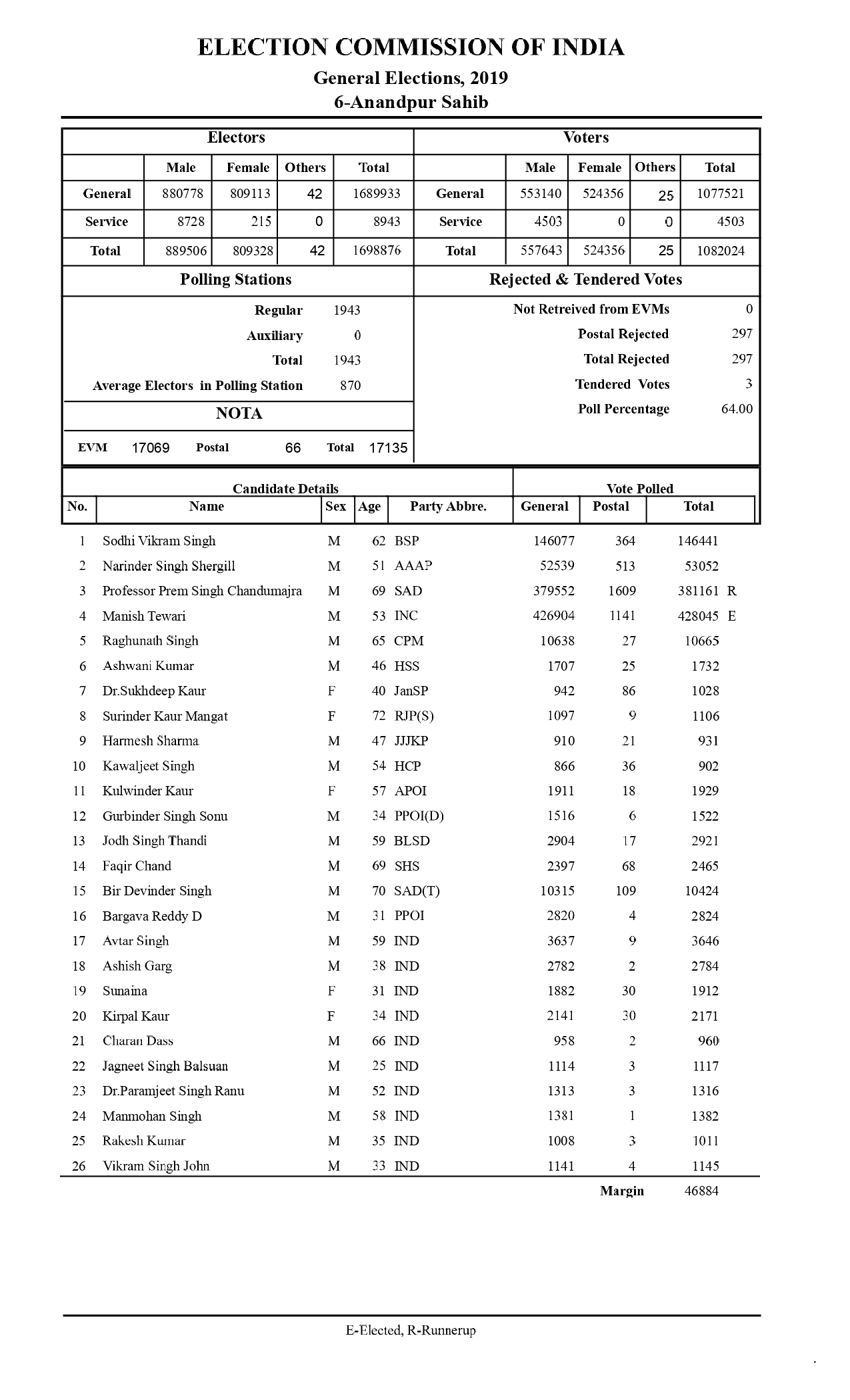 Anandpur Sahib (Gen) Parliamentary Cons.